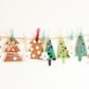 Oplatamy drzewka kolorowymi lub błyszczącymi nićmi. A gdy nasze ozdoby są gotowe, wieszamy cały las choinek na rozpiętej wcześniej wstążce i tworzymy girlandę świąteczną. Mocowanie choinek za pomocą spinaczy do bielizny ma dodatkowe Montessoriańskie walory ćwiczenia chwytu pęsetowego.