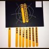 - Kładziemy na stole oba zestawy szpatułek. Przygotowujemy kartoniki z liczbami od 2 do 10.