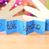 Z drugiego brystolu wycinamy wąski pasek (około 2/3 cm szerokości , długi na całą długość kartki). Składamy go w harmonijkę, na której piszemy: „tak bardzo”. Kolejnym krokiem będzie wklejenie harmonijki pomiędzy dłonie. I gotowe! Prosto i efektownie.