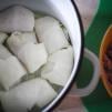 - Kapustę gotujemy przez ok. 10 minut na jeden z dwóch sposobów: w całości, po wcześniejszym wycięciu głąba lub pojedyncze, oddzielone delikatnie liście. Odkładamy do przestudzenia. Minusem gotowania kapusty w całości jest to, że im głębsze warstwy liści, tym są one twardsze (czasem niemożliwe do zwinięcia). Z kolei liście oddzielna na surowo, przed gotowaniem, są trudniejsze do zdjęcia bez uszkadzania ich.