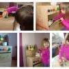 Ola bardzo chciała mieć kuchenkę, bo lubi pichcić i z moją pomocą stworzyłyśmy kuchenkę z pudełka tekturowego. Pokrętła to zakrętki od butelek, a palniki to stare płyty CD.
