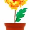 Patyczek obklejamy zieloną bibułą, z papieru wycinamy listki i przyklejamy do patyczka. Do papierowych kółek przyklejamy płatki z bibuły, tak aby wystawały poza kółko i tworzyły kwiat. Powstały kwiatek wbijamy po ostrzejszej stronie patyczka, na górze przymocowujemy plastelinową kulkę. Wykonujemy jeszcze kilka podobnych kwiatów i wstawiamy je do doniczki. Aby były stabilniejsze i bardziej autentyczne doniczkę można napełnić ziemia ogrodową.