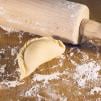 Pierogi orkiszowe można podawać polane roztopionym masłem lub okraszone cebulką podsmażoną na oliwie z oliwek.