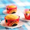 Mąkę łączymy z sodą, proszkiem do pieczenia, cukrem, orzechami i żurawiną. Jajka mieszamy z olejem i wraz z marchwią utartą na drobnych oczkach, dodajemy i łączymy z suchymi składnikami. Ciasto przekładamy do foremek, na wierzchu każdej układamy kostki twarogu - kilka można wcisnąć w ciasto.