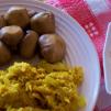Kaszę jaglaną podajemy z pieczarkami, danie polewamy sosem.