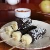 Banany kroimy na pół, nadziewamy na patyczki od szaszłyków i wkładamy do zamrażarki na ok godzinę (powinny być zmrożone, ale jeszcze miękkie). Następnie rozpuszczamy czekoladę i olej kokosowy w kąpieli wodnej (dodajemy olej by czekolada nie była zbyt gęsta). W tak uzyskanej polewie szybko moczymy wyjęte z zamrażarki banany, obsypując je od razu orzechami lub wiórkami. By wykonać polewę bez czekolady możecie do oleju dodać 1 łyżkę kakao i 1 łyżkę miodu lub syropu z agawy. Smacznego! :)