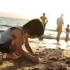 Młodszym dzieciom (około 4 lat) można zaproponować rysowanie za pomocą palców (świetne ćwiczenie sensoryczne!), lub patyczka po mokrym piachu. Zabawa ta pomoże odwrażliwić małe rączki, ponadto sprawi, że plaża przeobrazi się w piękną galerię obrazów. Zabawę można dowolnie modyfikować w zależności od wieku uczestników - starszym dzieciom można zaproponować, aby narysowały jakiś przedmiot, a my zgadniemy, co to jest i na odwrót.