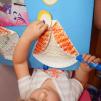 5. Czas zrobić wielkie oczy. Na największe koło naklejamy mniejsze, a na końcu najmiejsze